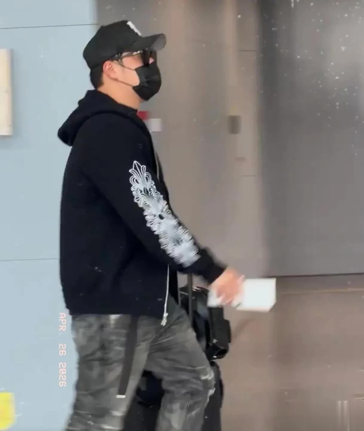 彼时他独自推着行李箱,身旁未见工作人员跟随,步伐轻快,似是有事在身急于赶路。机场内人来人往,他并未停留,径直前行,显得极为利落。正因如此,即便穿着低调,仍极易被路人留意到。