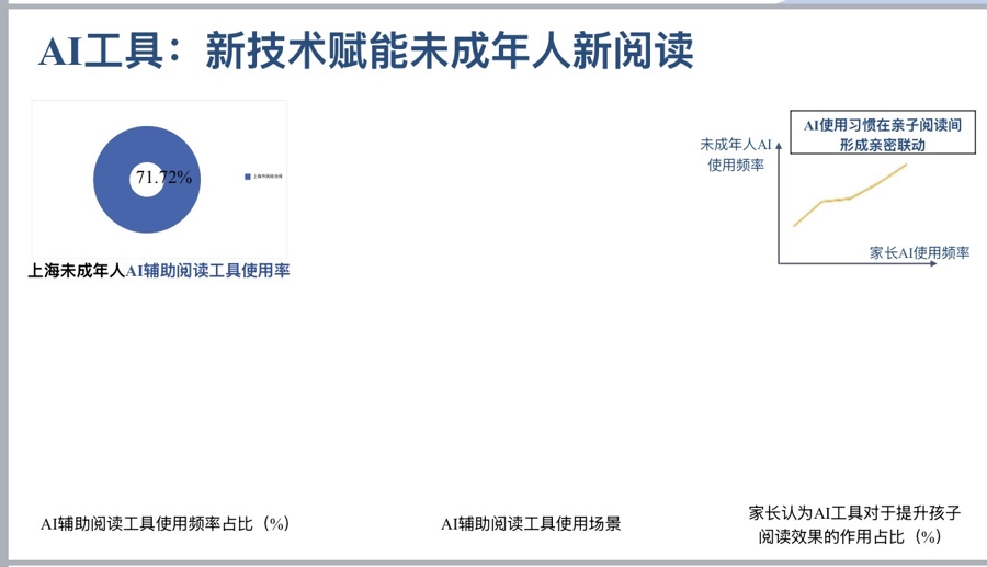 过去一年,超七成未成年人使用了人工智能(AI)辅助阅读,仅有28.28%表示从未使用AI工具。超六成(63.03%)家长认为AI对孩子阅读理解有明显帮助。
