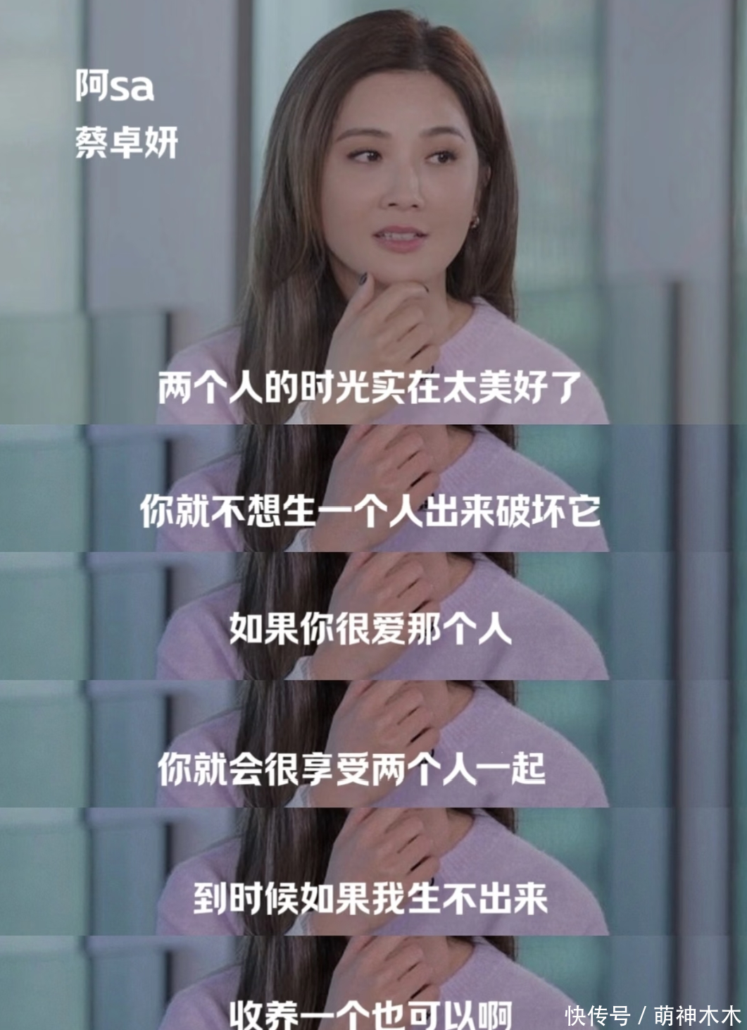 当然,阿Sa对于自己要不要生孩子也没有特别功利,她曾表示两个人如果很相爱却无法生孩子的话,可以领养。